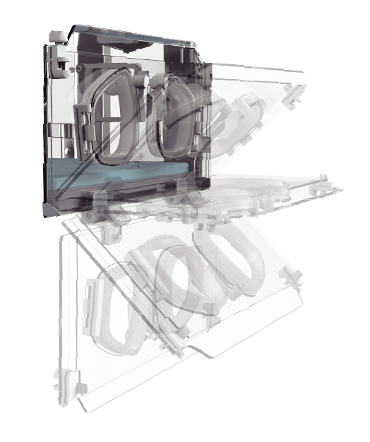 Humedad superior al 95% mediante generador PWM y tanque frontal autoclavable (PPSU).