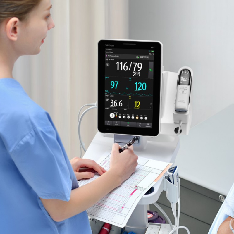 El VS 9 proporciona mediciones precisas de los signos vitales a gran velocidad, y maximiza la comodidad del paciente y la eficiencia clínica.