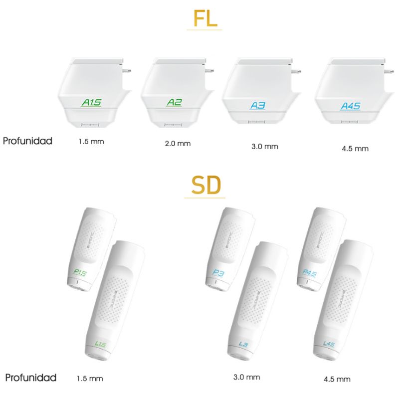 Conexión simultánea de 4 piezas de mano. 20 tipos de cartuchos facial y corporal.