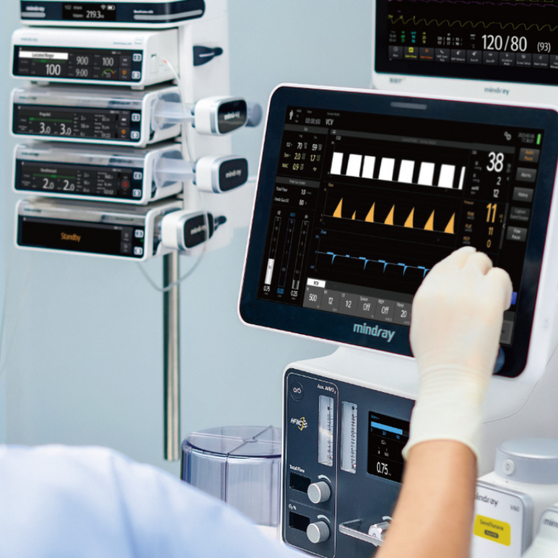 El sistema de anestesia Mindray A5 es una estación de anestesia en carro equipada con monitorización respiratoria y mezclador electrónico de gases. Su diseño permite un cuidado efectivo para pacientes de cualquier gravedad, utilizando la espirometría integrada para facilitar una toma de decisiones clínicas precisa y fundamentada.